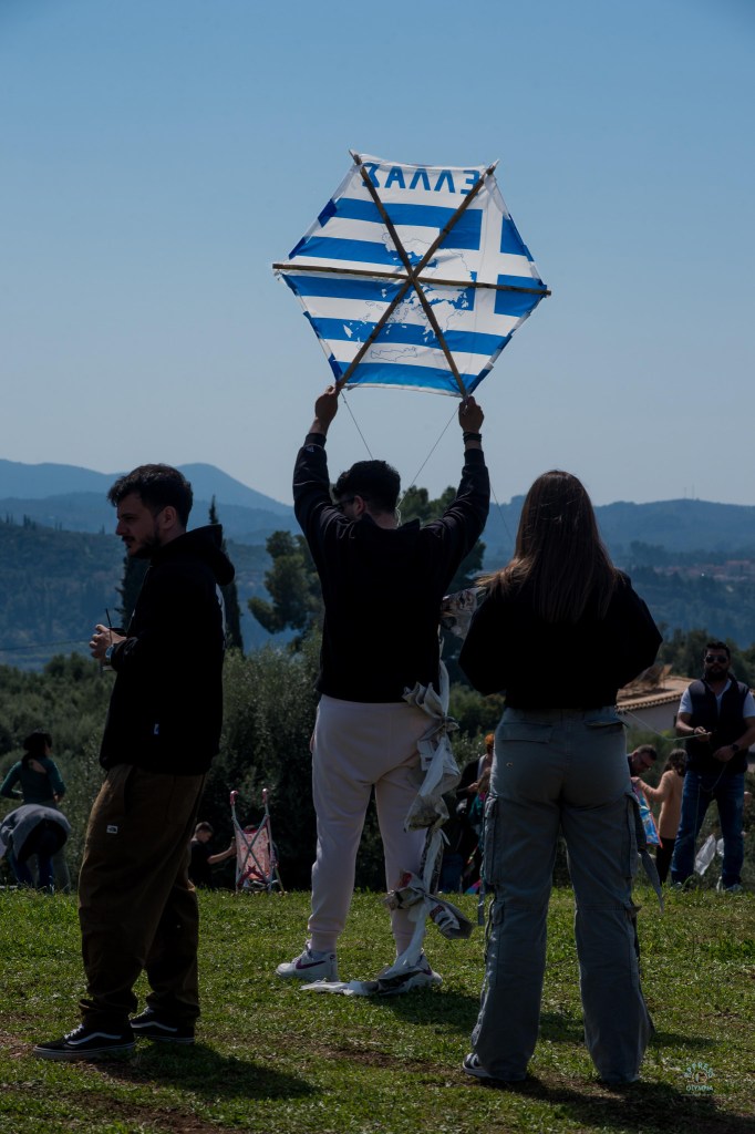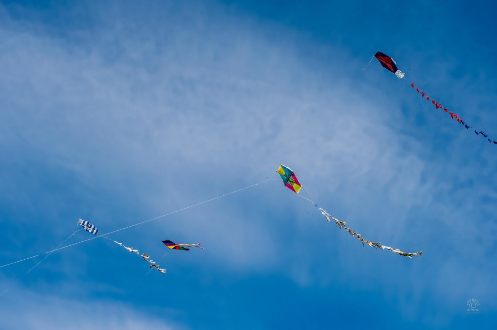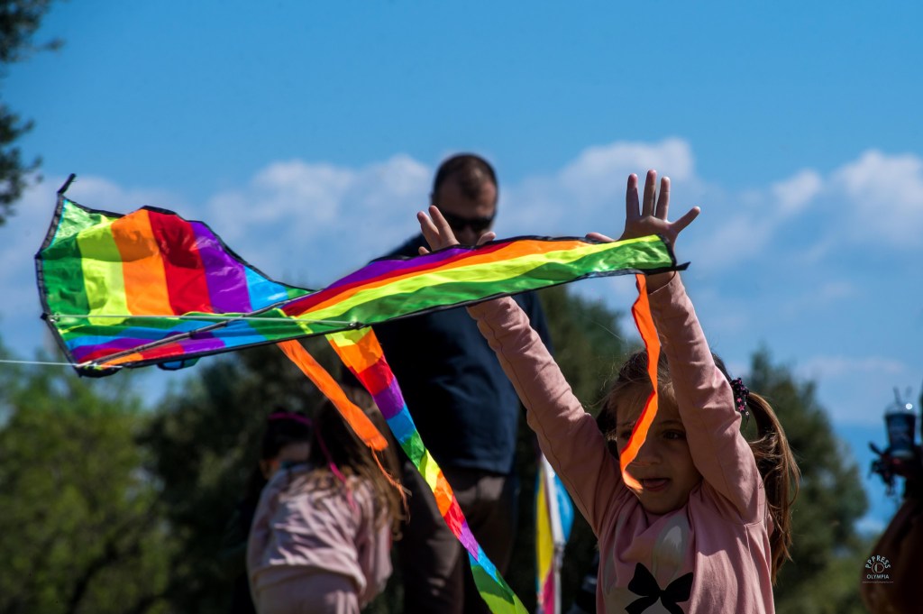 Η Τοπική Κοινότητα Αρχαίας Ολυμπίας είχε εξασφαλίσει την προμήθεια των τοπικών και παραδοσιακών Σαρακοστιανών εδεσμάτων αλλά το ενδιαφέρον όλων – και το δικό μας – ήταν στον καταγάλανο οιυρανό, με την προσδοκία να τον δουν να γεμίζει από πολύχρωμους χαρταετούς! Ευτυχώς ο Αίολος δεν είχε αργία και σε λίγο ένα υπέροχο θέαμα από χαρταετούς, παιδικά χεράκια, καλούμπες και φωνές γέμισαν τον μικρό λόφο.