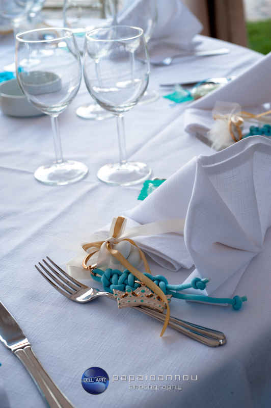 Οι καλεσμένοι, όλοι φίλοι της οικογένειας, μετά τη βάπτιση, συγκεντρώθηκαν γύρω από τα στολισμένα τραπέζια και απόλαυσαν τα φαγητά και τα εδέσματα που είχαν παραγγελθεί ειδικά για κείνη τη μέρα, από το caternig «Club Service».
